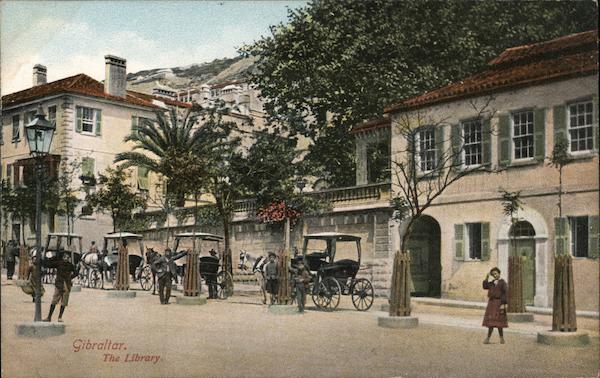Front: AL Gibraltar. The Library. Back: A. Benzaquen, Tanger. THIS SPACE MAY BE USED FOR COMMUNICATION. 1/2 d. STAMP. 1 d. 47556