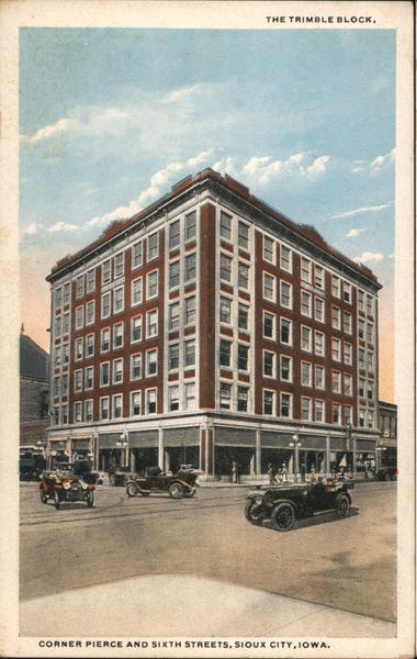 Front: 00 00 06 18 THE TRIMBLE BLOCK, 20 80 8.8 3.3 00 00 0.9 CORNER PIERCE AND SIXTH STREETS, SIOUX CITY, IOWA. 14. Back: R-64517 C.T. AMERICAN ART 200 THIS SPACE FOR ADDRESS ONLY.