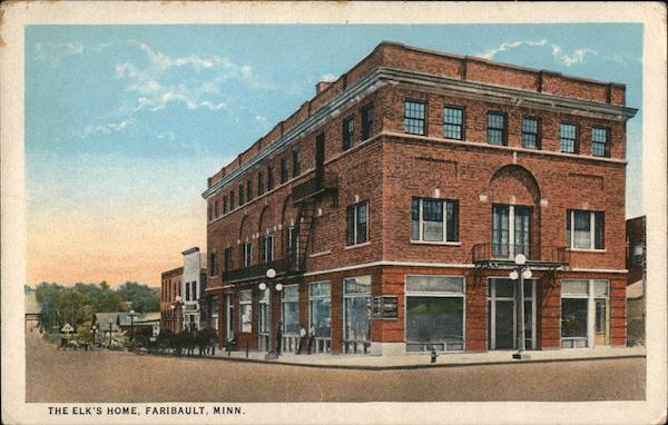 Front: THE ELK'S HOME, FARIBAULT, MINN. BE Back: C.T. AMERICAN R-56910 800 PLACE STAMP HERC AND ISLAND POSSESSIONS, CUBA, CANADA AND MEXICO FOR FOREIGN