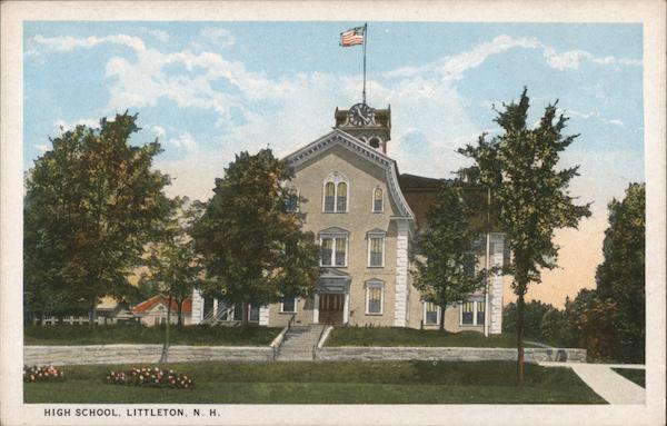 Front: HIGH SCHOOL, LITTLETON, N. H. www. S Back: MADE IN USA PUBLISHED BY ATKINSON NEWS CO., TILTON, N. H. A-96887 NATUREKROM CAR AND ISLAND POSSESSIONS, CUBA, CANADA AND MEXICO FOR FOREIGN