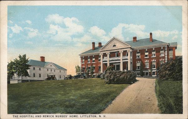 Front: 11 11 20 THE HOSPITAL AND REMICK NURSES' HOME, LITTLETON, N. H. HOSPITAL * Back: MADE IN USA PUBLISHED BY ATKINSON NEWS CO., TILTON, N. H. A-96889 NATUREKROM. Es AND ISLAND POSSESSIONS, CUBA, CANADA AND MEXICO FOR FOREIGN