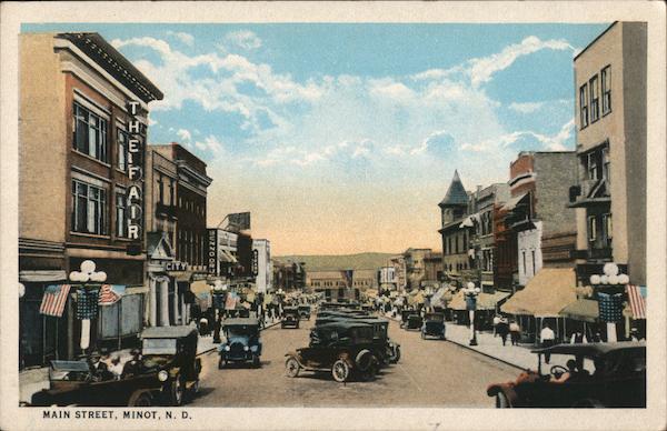 Front: THED 110 CITY MAIN STREET, MINOT, N. D. OZZOOR ROPONER GANGSH VYQ4K5 Di our A Back: MERICAN R-93659 2- CHICAGO 15 AND ISLAND POSSESSIONS, CUBA, CANADA, AND MEXICO FOR FOREIGN