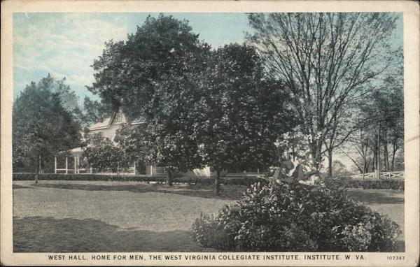 Front: WEST HALL, HOME FOR MEN, THE WEST VIRGINIA COLLEGIATE INSTITUTE, INSTITUTE, W. VA. 107387 Back: MADE BY CURT TEICH & COMPANY, INC. CHICAGO, U. Ş. A.