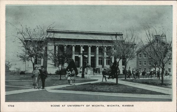 Front: 1732 SCENE AT UNIVERSITY OF WICHITA, WICHITA, KANSAS Back: 4- POSARD WALRAVEN BROTHERS. INC.. DALLAS. TEXAS- IRAAN TAM VES CENT