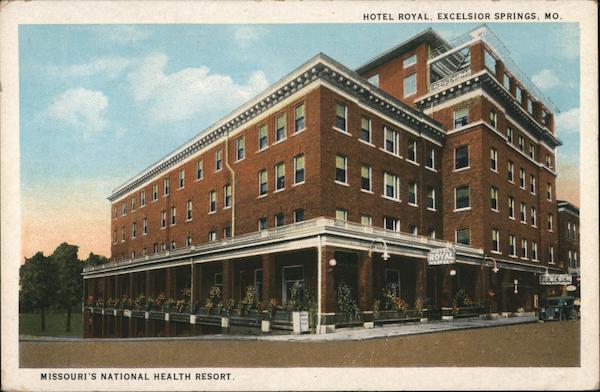 Front: TITODO O B 000 CE DITT 11,111 EEL MISSOURI'S NATIONAL HEALTH RESORT. HOTEL ROYAL, EXCELSIOR SPRINGS, MO. 118 31811 ROYAL yyyy 1999 1111 1 OFTESERI Back: A-103813 10 To HERE