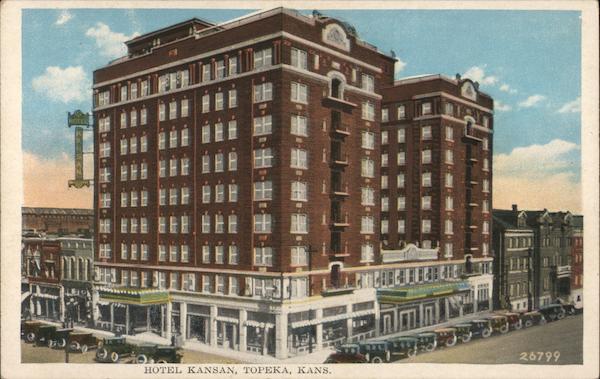 Front: Ħ+ + + = *** *** BER *** *** *** ***** ***.*** TO JE T 10 0-1300 BE HOTEL KANSAN, TOPEKA, KANS. CXTCRBCA BELARCHALA *** TU 26799 Back: MADEMUSA IN 100