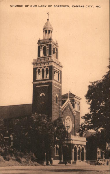 Front: CHURCH OF OUR LADY OF SORROWS, KANSAS CITY, MO. C1 m Back: ARtvue ARTVUE POST CARD CO., 22 FIFTH AVE., NEW YORK, N. Y. POST CARD 5-