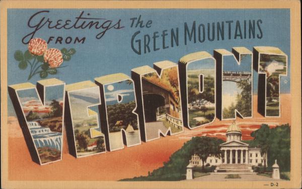 Front: Greetings The 15 A GREEN MOUNTAINS TTTTT - D-2 Back: 28295 ******** Published by Norcross-Eldridge Co., Rutland, Vt. Colorcraft-Made by The Dexter Press, Pearl River, N. Y. PLACE