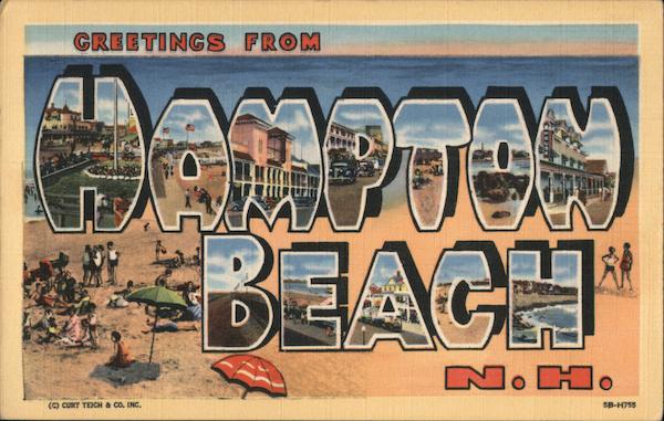Front: GREETINGS FROM (C) CURT TEICH & CO. INC. AMPTON BEACH N. H. 5B-H755 Back: J. S. DUDLEY CO., HAMPTON BEACH, N. H. GENUINE CURTEICH-CHICAGO "C.T. ART-COLORTONE" POST CARD (REG. U.S. PAT. OFF.) PLACE