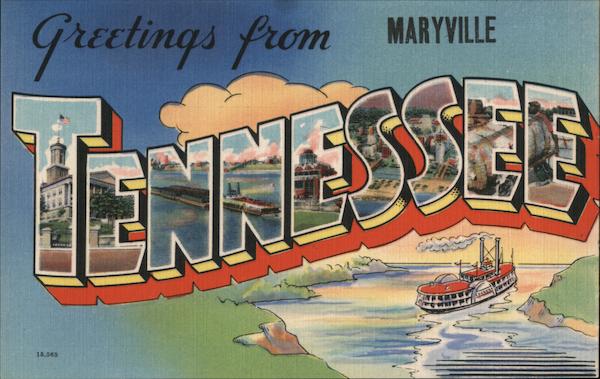Front: Greetings from 15,565 1345 MARYVILLE S Back: FOR ASHEVILLE POST CARD CO., ASHEVILLE, N.C PUB A "COLOURPICTURE" PUBLICATION, BOSTON 15, MASS., U. S. A. HERE