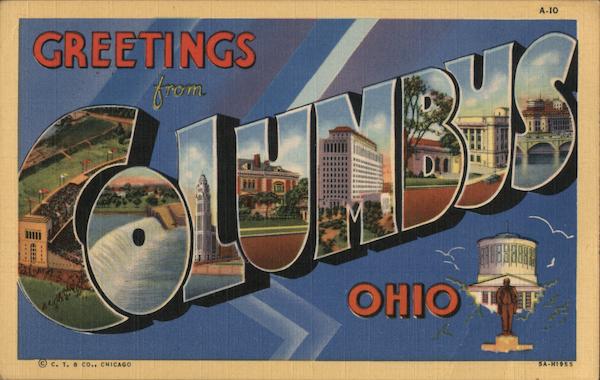 Front: GREETINGS ****** C. T. & CO., CHICAGO ***** 出殺 DIO 2888 OHIOTT A-10 5A-H1955 Back: W. E. AYRES, 1049 LIVINGSTON AVE., COLUMBUS, OHIO GENUINE CURTEICH-CHICAGO "C.T. ART-COLORTONE" POST CARD (REG. U.S. PAT. OFF.) PLACE