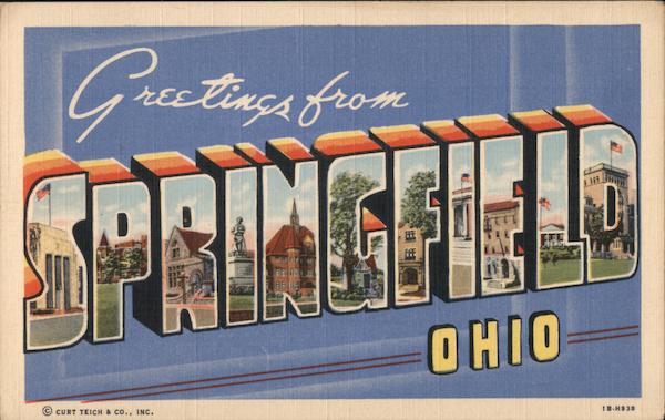 Front: Greetings from ਹੈ AX TEROLEVE LEE . H WH CURT TEICH & CO., INC. 1 B-H938 Back: FREED NEWS CO., SPRINGFIELD, OHIO GENUINE CURTEICH-CHICAGO "C.T. ART-COLORTONE" POST CARD (REG. U.S. PAT. OFF.) R.