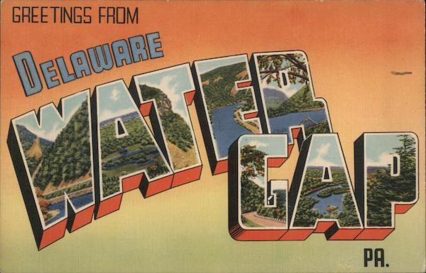 Front: GREETINGS FROM DELAWARE PA. Back: 12166 ACOLOURPICTURE PUBLICATION, CAMBRIDGE, MASS., U. S. A. HERE