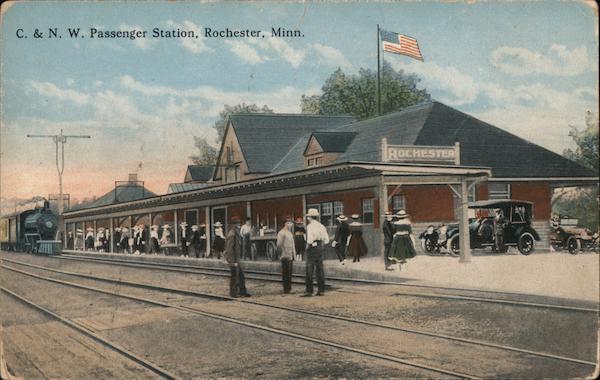 Front: C. & N. W. Passenger Station, Rochester, Minn. 使用 ROCHESTER Back: 3842 Quality Line Bloom Bros.Co. Minneapolis A-5283 murs it. STAMP HERE