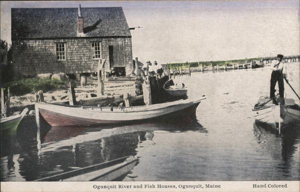 Front: Ogunquit River and Fish Houses, Ogunquit, Maine Hand Colored Back: REGUS PAT OFF EST 1904 FRANK SWALLOW INC. 1911 EXETER N. H. CO. INC POST GARD St HERE