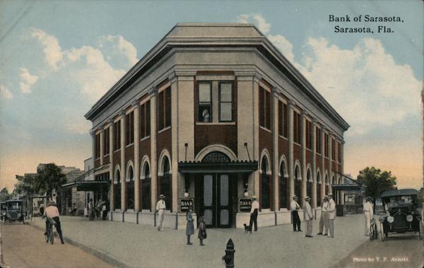 Front: **T3720 SHOES BANK SARAS BANK SARASOTA Bank of Sarasota, Sarasota, Fla. Photo by T. F. Arnold. Back: SE R-51825 T. PHOTOCHROM Ros THIS SPACE FOR ADDRESS ONLY.