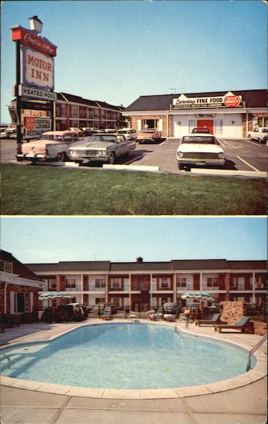 Newest and finest Motor Inn featuring beautiful cocktail lounge, restaurant, conference and banquet rooms. TV., radio, heated pool, soundproof and fireproof. Air conditioned. 24 hour service.