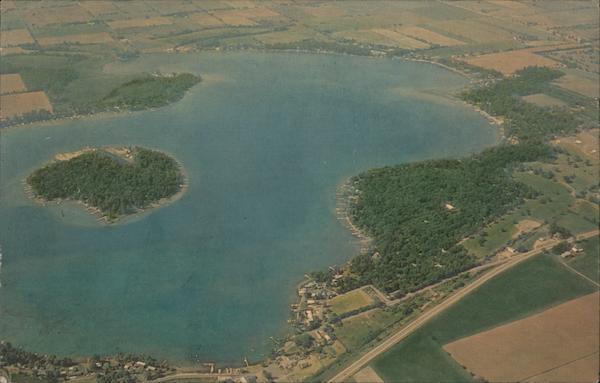 Aerial view of beautiful Diamond Lake, Cass County's