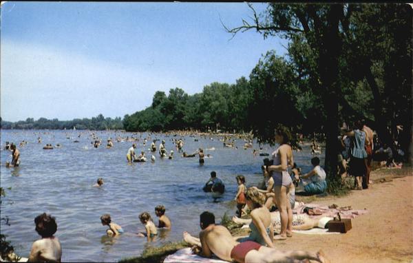Copyright 1956, The L. L. Cook Co. 88966 Beach at Hayes State Park Irish Hills, Michigan From A Natural Color Transparency, The L. L. Cook Co., Milwaukee, Wis. HERE