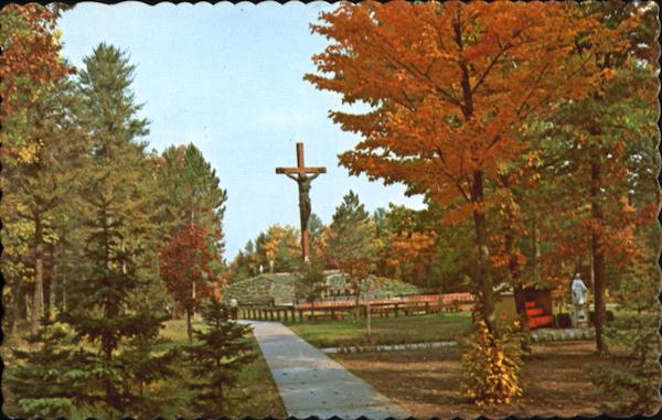 | The "World's Largest Crucifix" stands in a beautiful pine grove just south of Indian River. The Bronze Corpus is 31 feet high, 22 feet wide and weighs 4 tons. The Cross is cut from one California Redwood tree, and is 55 feet high, 22 feet wide and weighs 14 tons. |