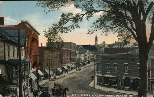 Front: 20 itti MAIN STREET, LOOKING NORTH, DEXTER, ME. Back: Co A-40827 T. PHOтоснROM. 2015 THIS SPACE FOR ADDRESS ONLY.