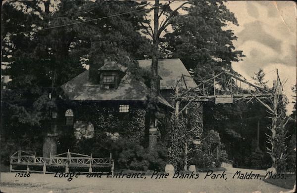 Front: 17566 Lodge and Entrance, Pine Banks Park, Malden, Mass Back: Correspondence after March 1st 1907 TWO CENTS