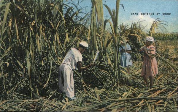 Front: CANE CUTTERS AT WORK Back: 96 COPYRIGHT PHOTO BY E. WELLS ELLIOTT, KINGSTON, JAMAICA. C. T. AMERICAN ART COLORED 107278 HERE