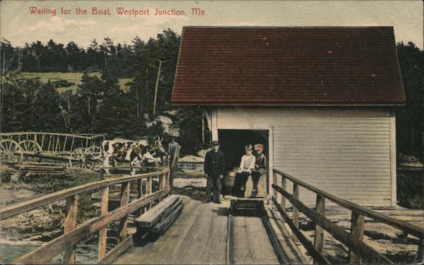 Front: Waiting for the Boat, Westport Junction, Me. Back: No. 31087 Published by F. I. Pettengill, Bath, Me. BATH 08 19 ME ohle. Loughlin NERIEN 19027 UNITED STATES OF Miss Martha Stuisons Round Cond Maine 1206 FRANKLIN 1790 ONE CENT