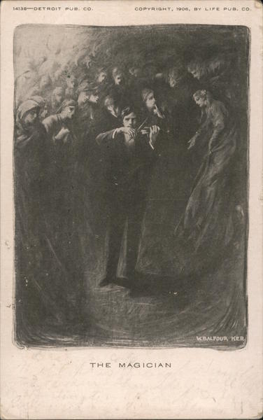 Front: 14138 DETROIT PUB. CO. COPYRIGHT, 1906, BY LIFE PUB. CO. THE MAGICIAN W.BALFOUR KER. Back: 3- 7:30 PM 1901 SERIES 1902 UNITED STATES OF Auf ANTERICA 1706 FRANKLIN Mr.C.E. Rouses Shumboldt heb. #7r. Watzke. 1790 ONE CENT
