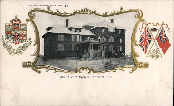 Front: Warwick Bro's & Rutter, Limited, Publishers, Toronto 409 機關 Ca 11 CD Highland View Hospital, Amherst, N.S. Back: 1500 50 1