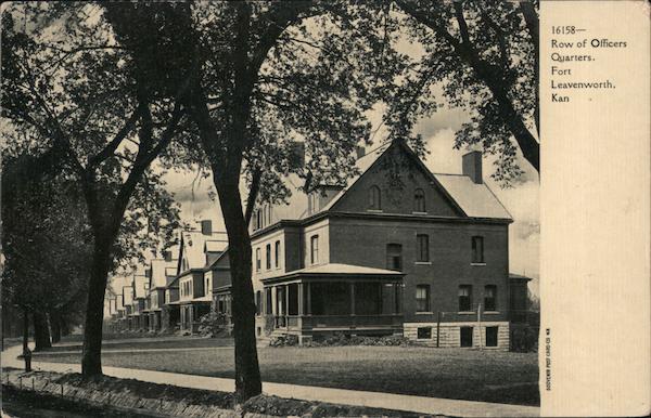 Front: SOUVENIR POST CARD CO N.X 16158- Row of Officers Quarters. Fort Leavenworth, Kan Back: 2.00 TWO CENTS