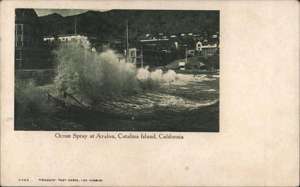 Front: 2385 PAL (13) "WOOD'S POST CARDS. LOS ANGBI EE Ocean Spray at Avalon, Catalina Island, California A Back: Sulle....... MC-06A 754 TWO CENTS