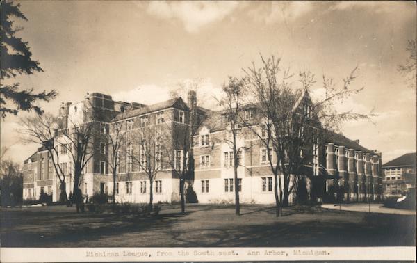 Front: 10 NA FEI FEI NEL 41 Michigan League, from the South west. Ann Arbor, Michigan. Back: april 13-1932 DA 20 A
