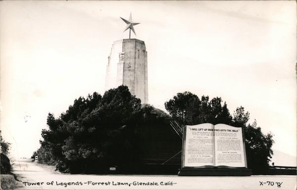 Front: Tower of Legends-Forrest Lawn, Glendale Calif- "I WILL LIFT UP MINE EYES UNTO THE HILLS" MT FOREST RECESSIONAL EASTER SUNK SERVICE TOWER OF LEGENDS X-70 PV Back: PLACE 14 HERE