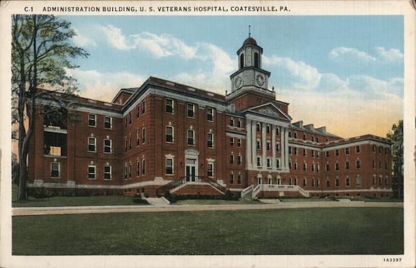 Front: C-1 ADMINISTRATION BUILDING, U. S. VETERANS HOSPITAL, COATESVILLE, PA. 38 à A MŰ N FO TY jg 1A3397 Back: LYNN H. BOYER, PHILADELPHIA, PA. AND WILDWOOD, N. J. C. T. AMERICAN ART COLORED TE Sala It cont