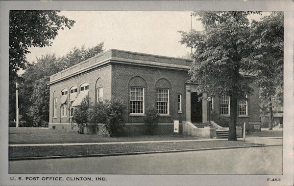 Front: U.S. POST OFFICE, CLINTON, IND. F-453 Back: MFD. BY WAYNE PAPER BOX & PRTG. CORP., FORT WAYNE, IND. VIEW CLEAR NER