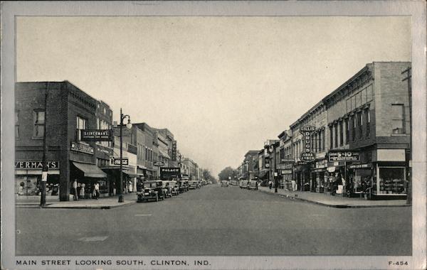 Front: VERMAN'S SILVERNANS SEATNING SND 28085 ALVELAKS 72 MAIN STREET LOOKING SOUTH, CLINTON, IND. 25 ***** *5528 GILLIS SODA LUNCH 119 *5*10* Ko 9000 389 F-454 Back: MFD. BY WAYNE PAPER BOX & PRTG. CORP., FORT WAYNE, IND. VIEW CLEAR MER