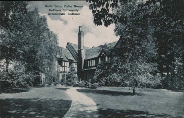 Front: Delta Delta Delta House De Pauw University Greencastle, Indiana Back: PUBLISHED BY SAM HANNA'S BOOK STORE, GREENCASTLE, INDIANA THE FINEST AMERICAN MADE VIEW POST CARDS-THE ALBERTYPE CO., BROOKLYN, N. Y. NER