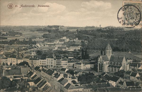 Front: 13. Audenarde. Panorama. 101 1 LE 20 impin Po POSTES BELGI Back: Cliché F. Walschaerts, Bruxelles. Carte postale. лов Postkaart. (127 وٹتے 11-12 27 M OCTO 1940 AUDE RDE Mele Atidar Wittebroodt que des prairies 37 ruscellez