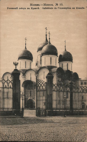 Front: Москва.-Moscou. № 10. Успенскій соборъ въ Кремлѣ. Cathedrale de l'Assomption an Kremlin. | Back: ПОЧТОВАЯ КАРТОЧКА. OARTE POSTALE 3, ФОТОТИПІЯ ШЕРЕРЪ, НАБГОЛЬЦЪ И ИЗ, МОСКВА