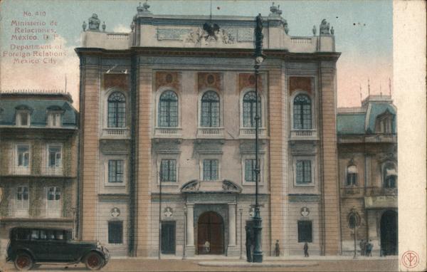 Front: No. 410 Ministerio de Relaciones, México. D F. Department of Foreign Relations Mexico City NIS AN DE WE 3 Back: Republica Mexicana +₂ Editor F Martin México, D.F RS. AL
