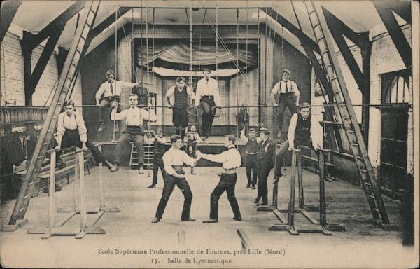 Front: 9.99 Ecole Supérieure Professionnelle de Fournes, près Lille (Nord) 15. - Salle de Gymnastique 27 Back: Tous les pays étrangers n'acceptent pas la correspondance au recto (Se renseigner à la Poste) کالا ADRESSE