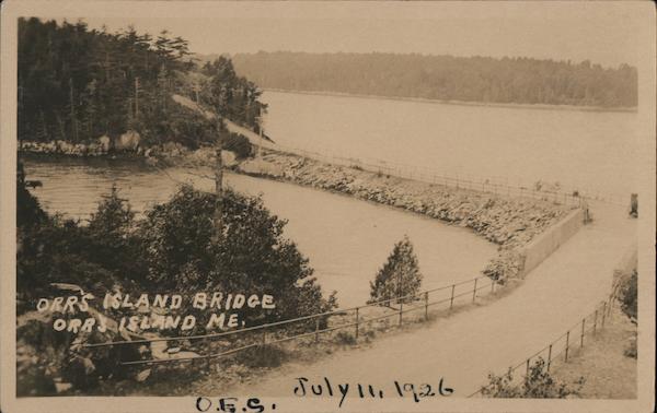 Front: ORRS ISLAND BRIDGE ORRS ISLAND ME. O.E.S. July 11, 1926 1 Back: AA 2 20 A 4 NO▷ 2 STAMP = o HERE 0 V2 A 2 201