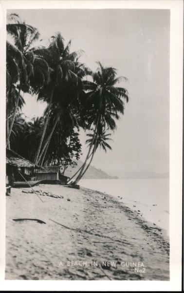 Front: A BEACH IN NEW GUINEA No.2 Back: THIS IS A GENUINE PHOTOGRAPH Pask COMPANY GROGAN PHOTO DANVILLE, ILL. Card