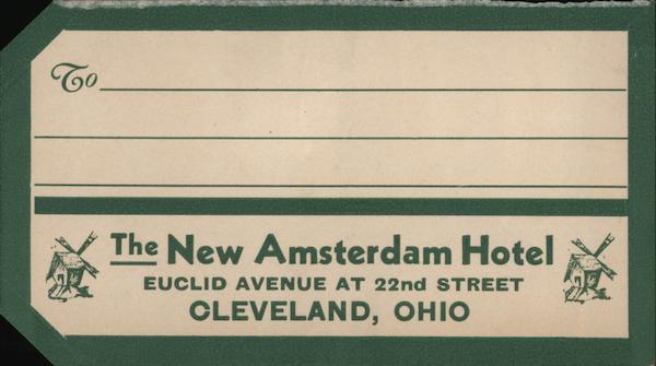 Front: Go The New Amsterdam Hotel EUCLID AVENUE AT 22nd STREET CLEVELAND, OHIO 飯 Back: IstoH mabistamA wol d DIHO MARVELO