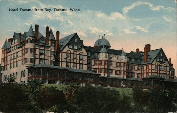 Front: Hotel Tacoma from Bay, Tacoma, Wash. 地位。 Back: PUBLISHED BY FRANK A. NEYHART & CO., TACOMA, WN. MADE IN U. S. A 781 CHICAGO A-8428 PHOTOCHROM. THIS SPACE FOR ADDRESS ONLY.