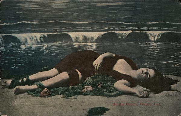 Front: On the Beach, Venice, Cal. Back: Pub. by Western Pub. & Novelty Co. Los Angeles. Cal. FOR CORRESPONDENCE, ONLY BOSTON MASS TICHNOR BROTHERS COAST TO COAST INC. LOS ANGELES CAL non GARD HERE