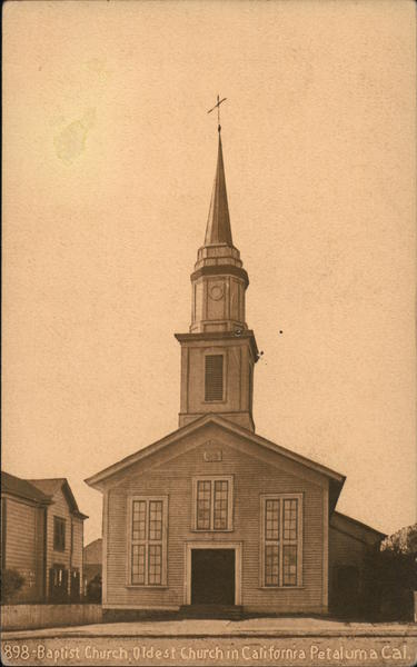 Front: 898-Baptist Church Oldest Church in Californra Petaluma Cal. Back: PUBLISHED BY EDWARD H. MITCHELL SAN FRANCISCO CAL. $1¢ FOREIGN 2¢ THIS SPACE FOR FOR ADDRESS ONLY