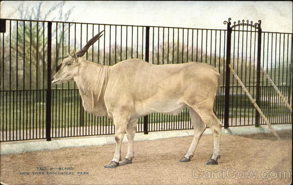 Front: 1322, BELAND NEW YORK ZOOLOGICAL PARK Back: AYZP Copyrighted-New York Zoological Society, Publishers QUADRI-COLOR CO. NEW YORK Only Official Post Cards of the New York Zoological Park bear this imprint GYZP TWO CENTS.