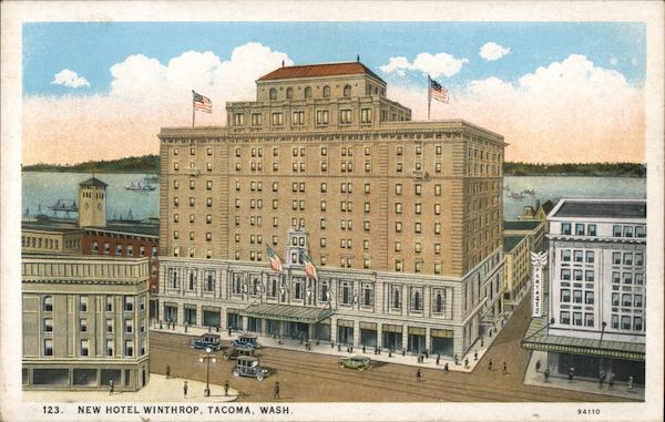 Front: IEEEBE ** 8888 D40 123. NEW HOTEL WINTHROP, TACOMA, WASH. 0000 o 담담담담담 00 0 VEREI ப000 பபபப . 0 DO Nooh ANTECE 94110 Back: PUBLISHED BY LELAND LUND, TACOMA. WASH. TACOMA C. T. AMERICAN ART COLORED $3,00 HERE